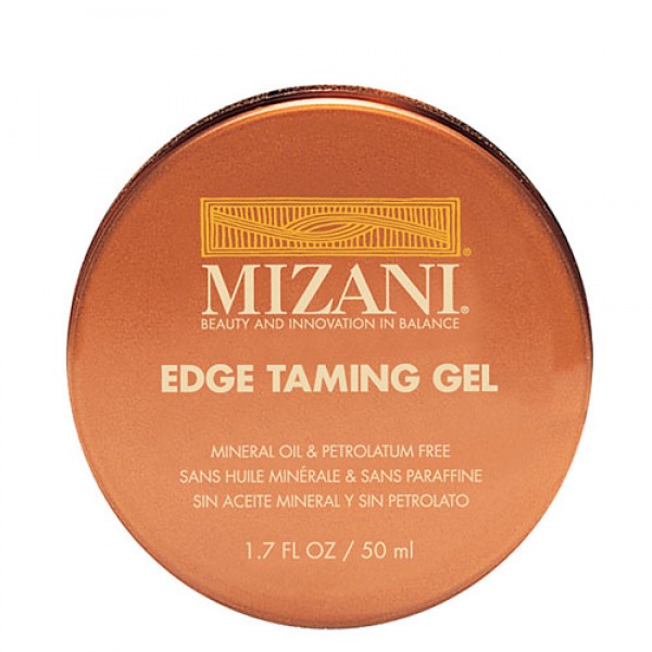 Mizani Edge Taming Gel instantly tames and controls strays, flyaways and unruly edges for sharp shapes, tapered cuts and highly defined styles. Jojoba, sunflower and aragon oil infusion replenish essential moisture and add touchable control. Contains anti-oxidant vitamin E and ceramide which helps strengthen the hair and creates a protective shield on the hair fiber/cuticle. Free of stickiness or flaking, mineral oil and petrolatum free technology won't create the build- up that sacrifices flexibility and shine. Unique petrolatum free gel- wax texture provides smooth, sleek, firm hold with a clean, non greasy feel.
