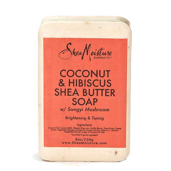 SheaMoisture's Coconut & Hibiscus Shea Butter Soap cleanses, moisturizes and naturally brightens dull skin.
